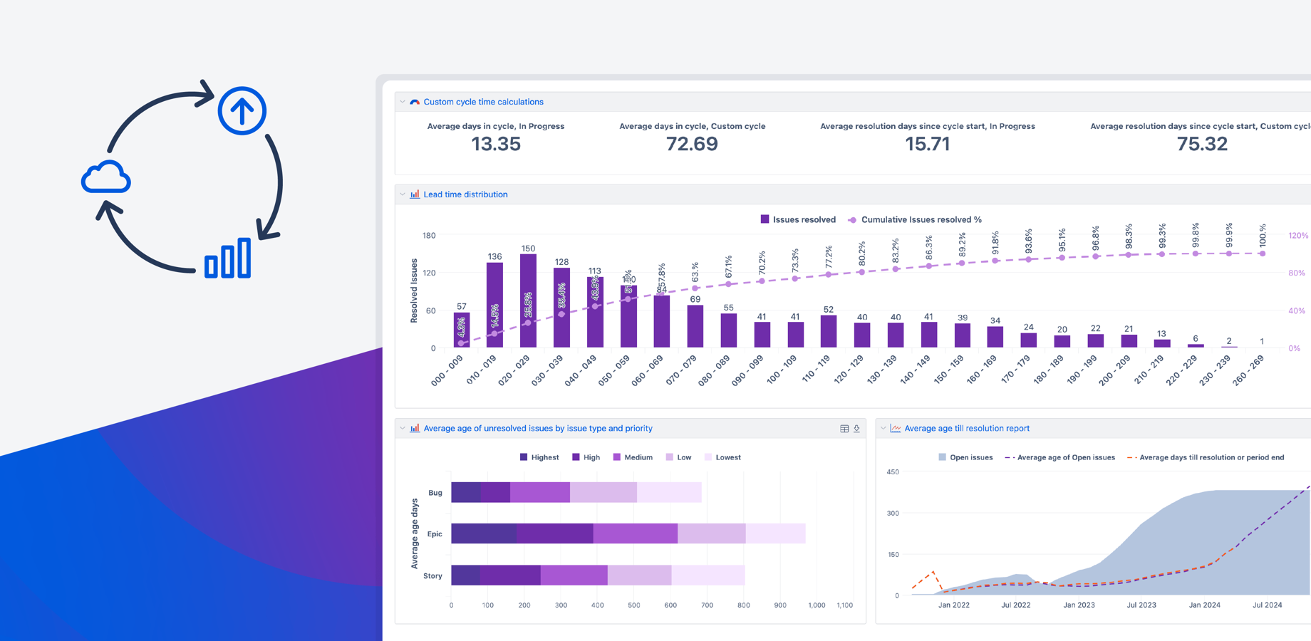 A powerful and flexible Business Intelligence and analytics app for Jira for organizations of all sizes: