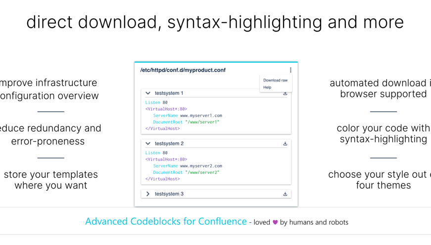 Move your infrastructure configuration to Confluence with ease and feed your templates with variables for your different systems.