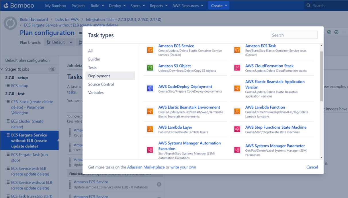 Tasks for your DevOps workflows – provision and operate AWS resources from Bamboo build and deployment projects: