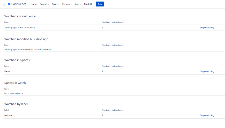 - In the same interface, the confluence administrator can easily manage in the same way watches of all the users of Confluence.