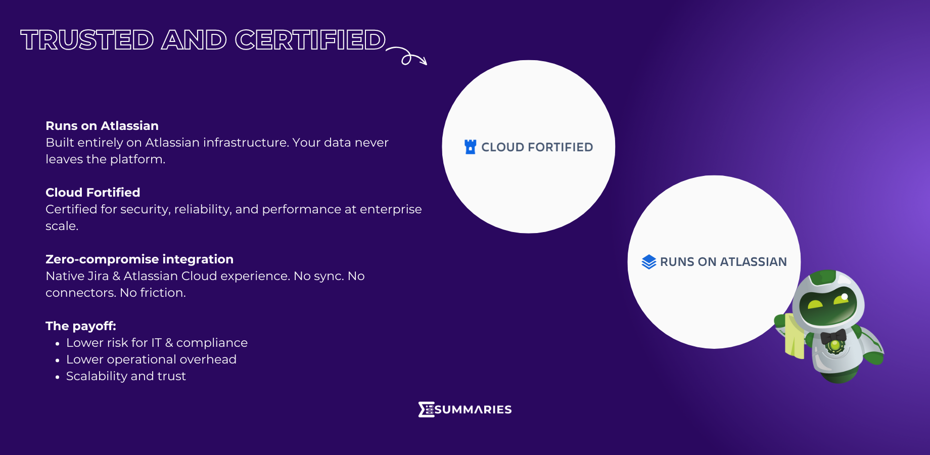 ESU, a pioneer Runs-on-Atlassian app, offers stellar performance and data residency compliance with full control over data egress, seamlessly integrating with Jira from daily to enterprise use.