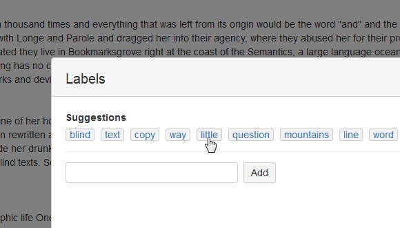 Users are directly given suggestions within the labels dialog from current content, and the most relevant labels can be added with a single click.
