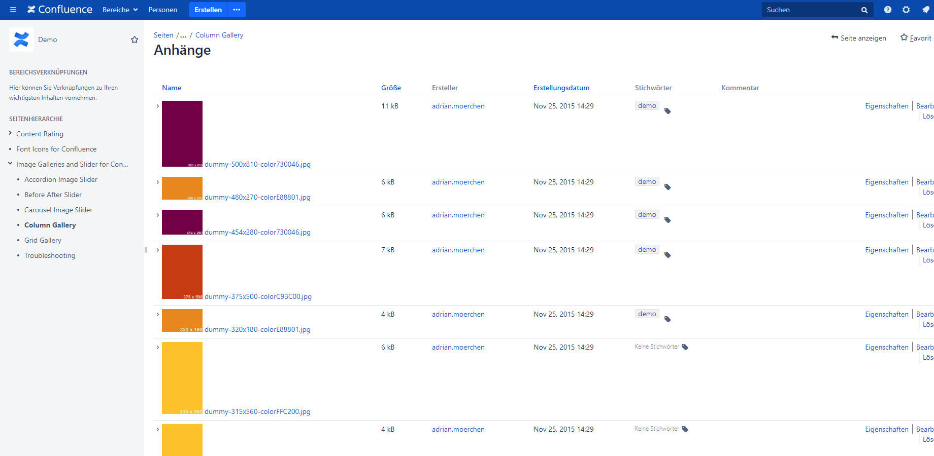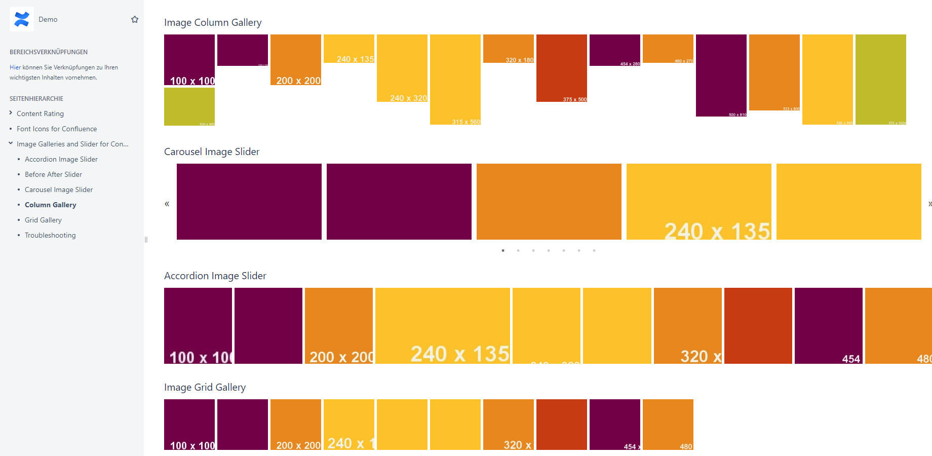 The Image Galleries and Slider add-on for Confluence Server allows you to improve your presentation of images of space, page or selected images by using some handy macros.
