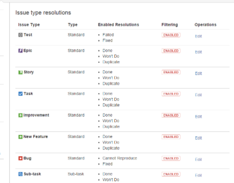 Key highlights of the appConfigurable resolutions per issue type based on Issue Type Resolution schemes