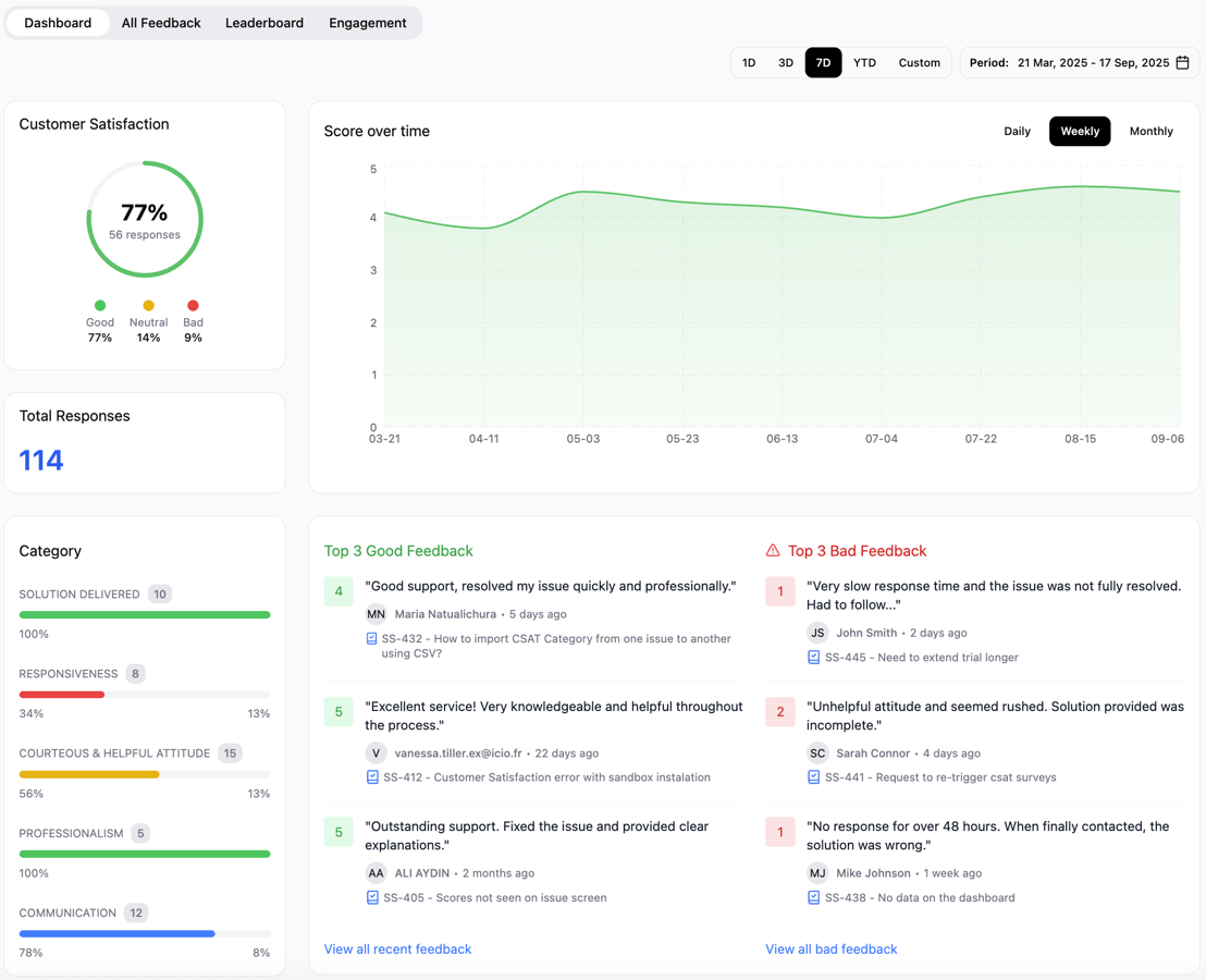 Drill down to the ticket level with our detailed satisfaction reports and truly understand your team's feedback.
