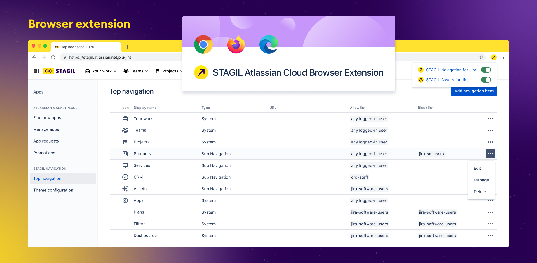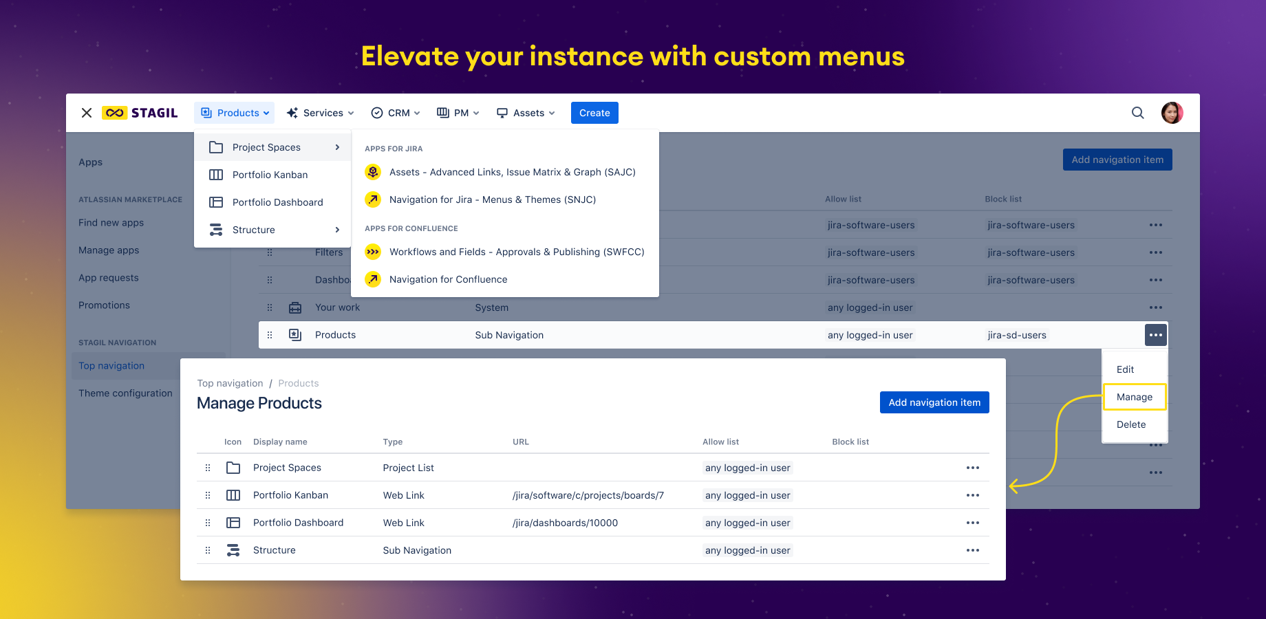 STAGIL Navigation Menus for Jira integrates with your Atlassian app