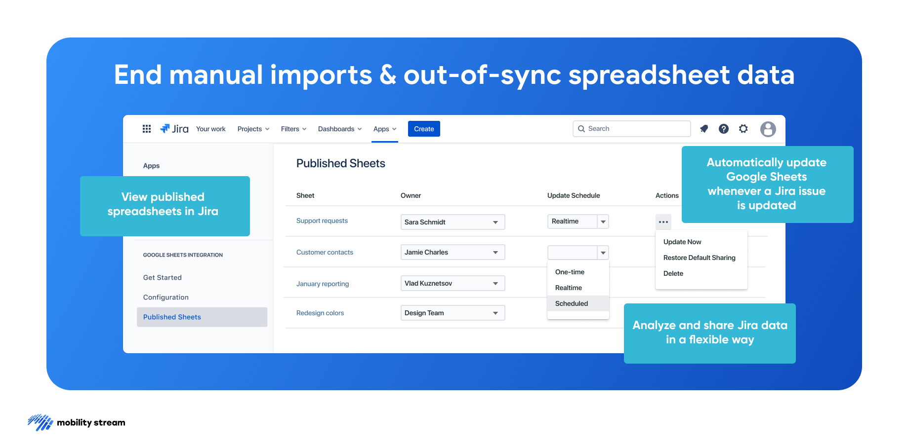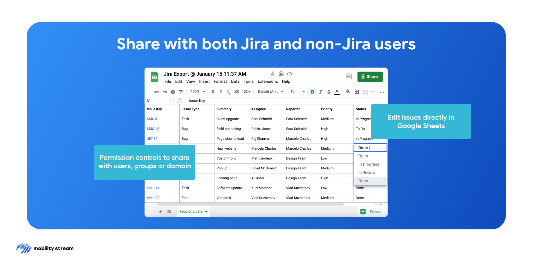 Key highlights of the appBetter analyze Jira data with the ability to export Jira issues to Google Sheets, all updated in real-time