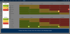 A fully customizable risk matrix ā you can change the dimensions and acceptability levels for risk classes. You can visualize risks both at the initial and the final state through initial and residual risk matrices.