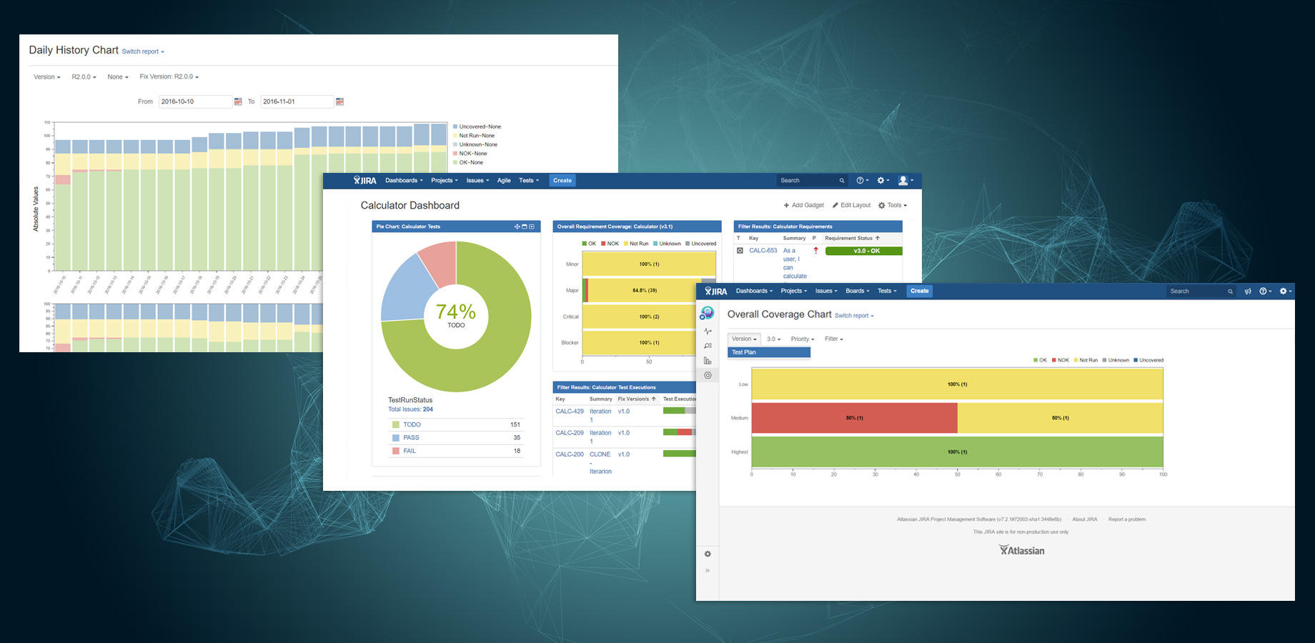 Track your progress with Xray and see your automated results reflected on the requirements. Associate them to Test Plans and Test Environments and analyze all of them in detailed reports.