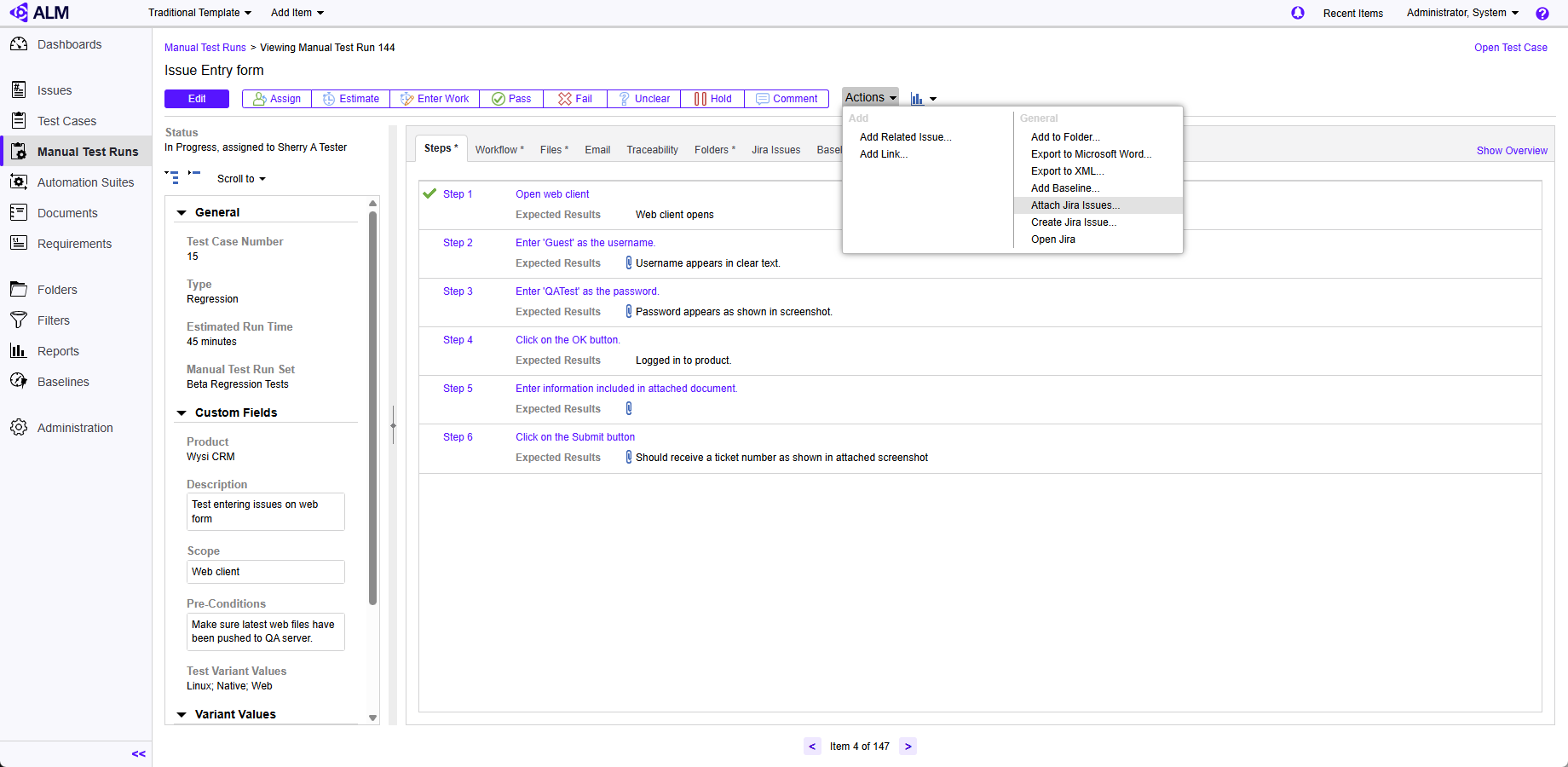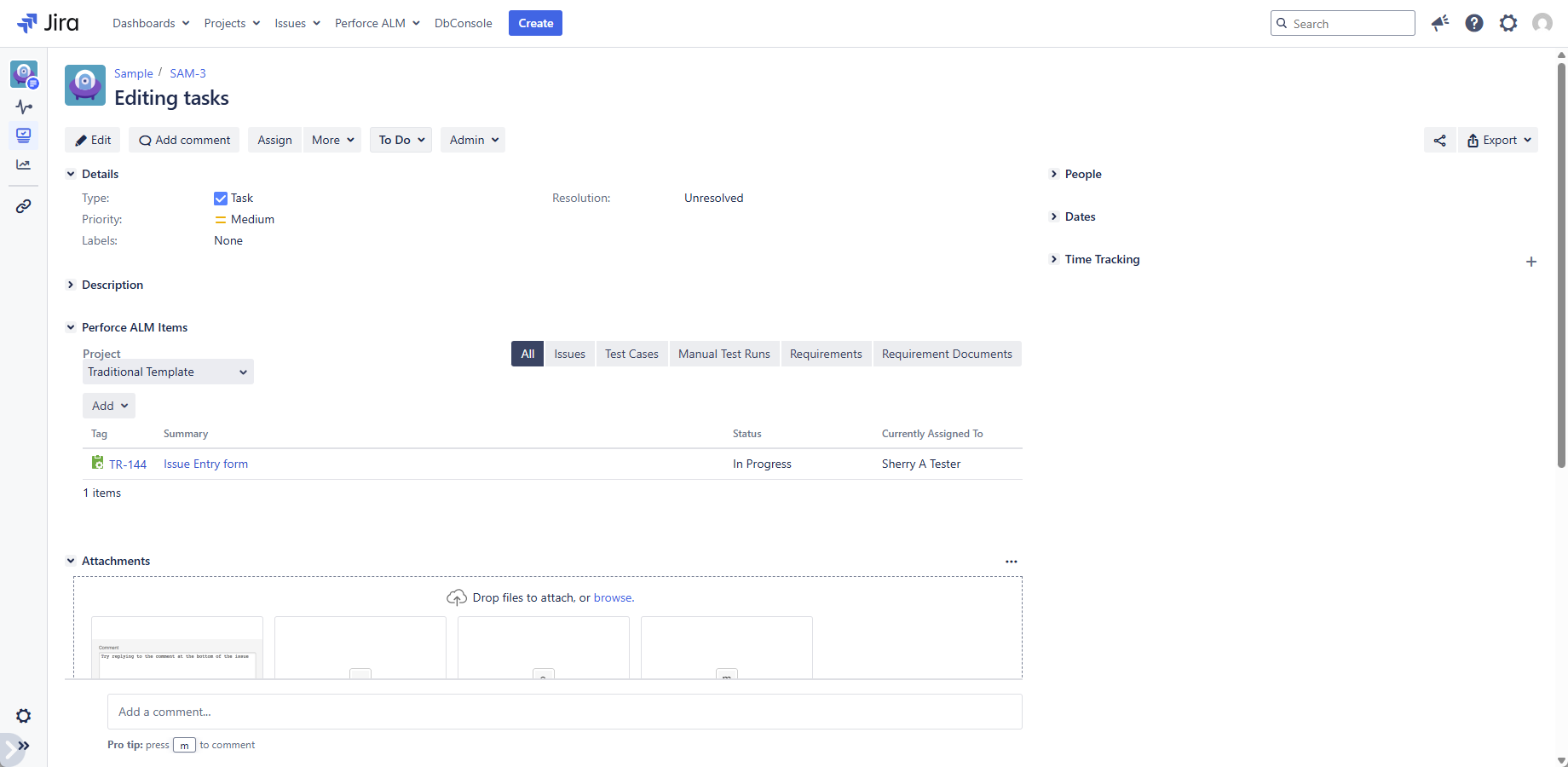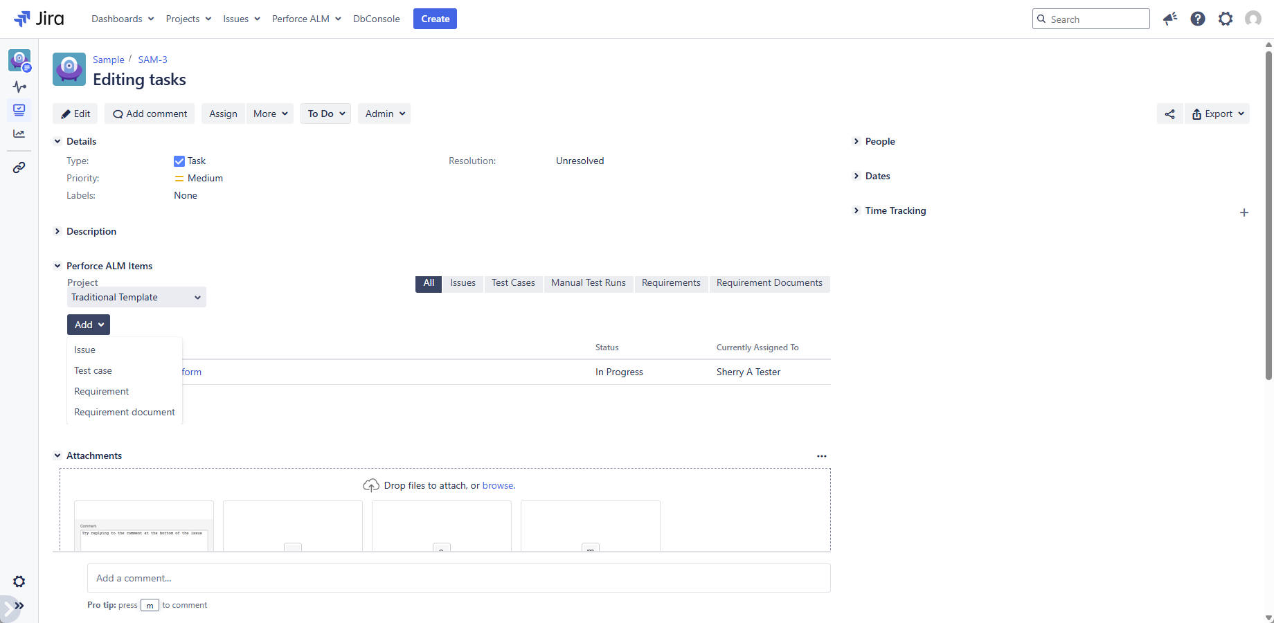 Don't forget to enable the Jira integration in Perforce ALM! See Configuring Jira integration for details.