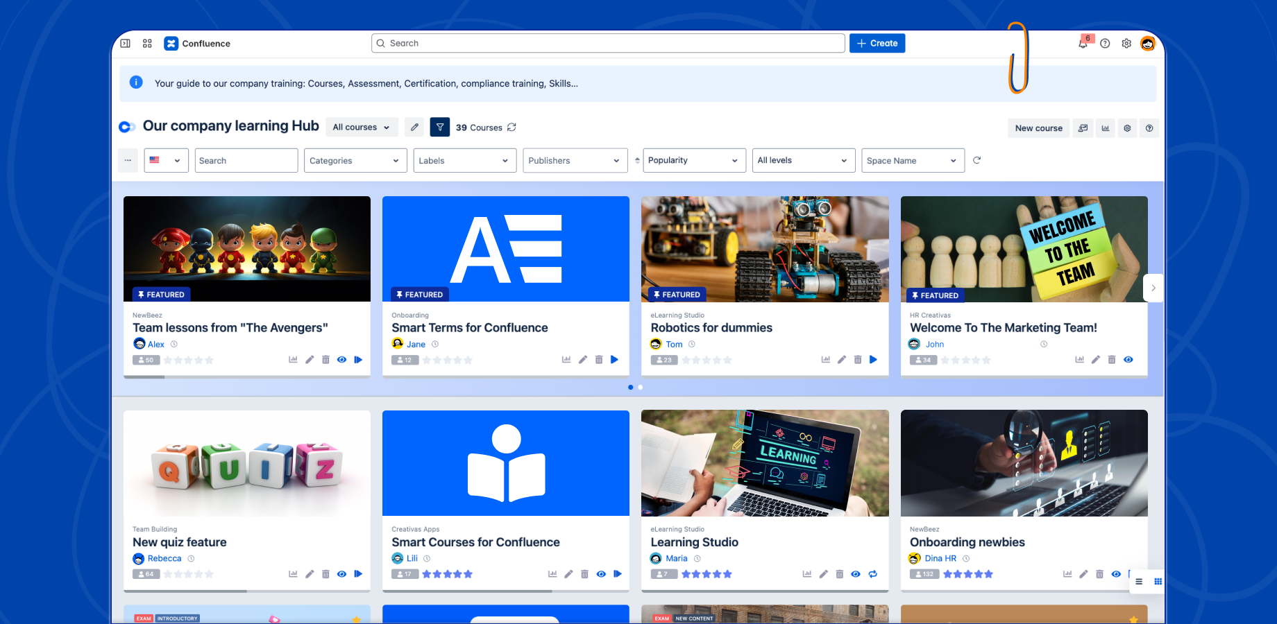 Easily create captivating courses within Confluence! No need to install a standalone LMS. Use Smart Courses for: