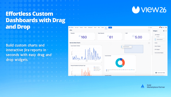 Build custom charts and interactive Jira reports in seconds with easy drag and drop widgets.