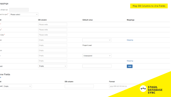 The field mapping enables you to define which database columns should be synced to your Jira system or custom fields. Moreover you can synchronize Jira links from your database.
