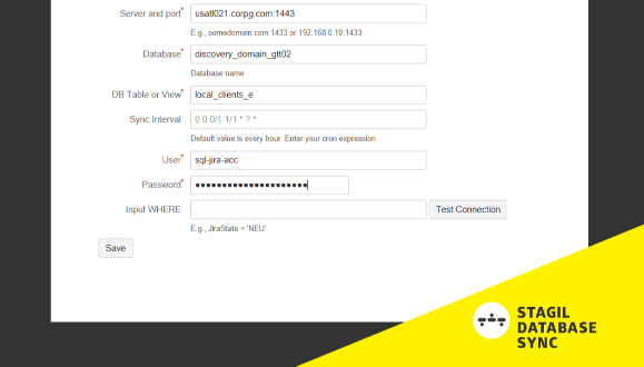 STAGIL Database Synchronizer for Jira allows you to connect any common SQL database tables and custom views.