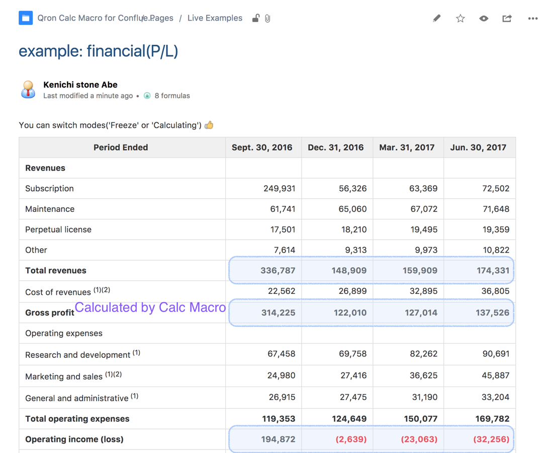You can insert Excel functions into your existing Confluence tables to display calculated results.