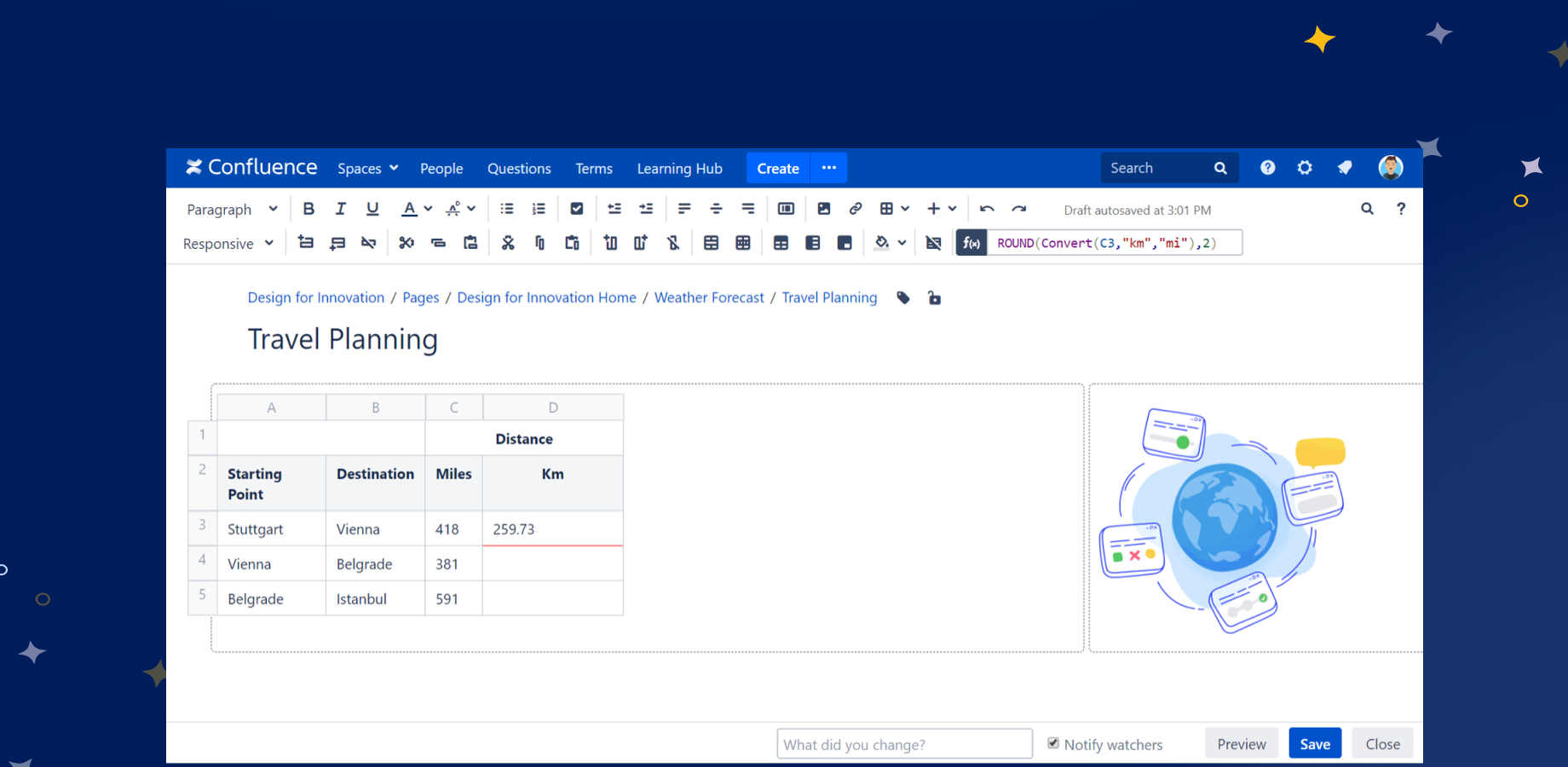 Excel functions in your native Confluence tables. Use more than 300 Excel formulas to perform simple or complexe math operations, add logics and conditions without using macros.