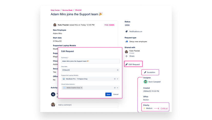 Configure custom actions on your portal. Customers can now transition requests, escalate them or even make changes themselves. Enable true self-service and reduce agent workload for a better customer support experience.