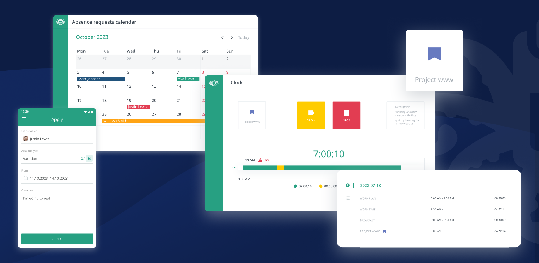Key highlights of the appHR system: time tracker & absence management for your Team