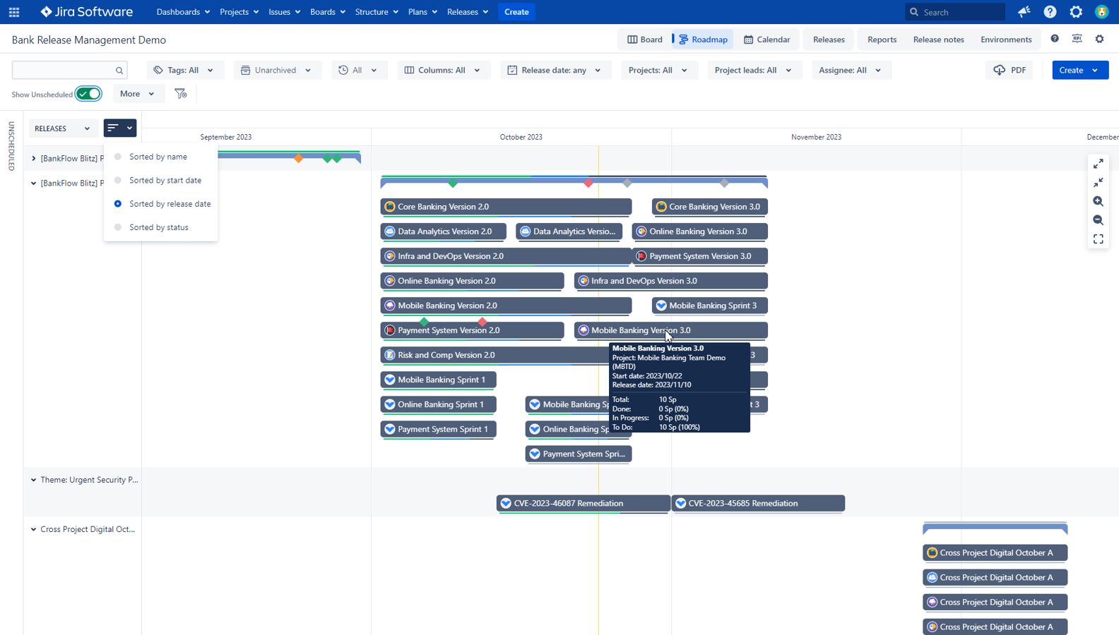- Use our flexible Releases Taxonomy with releases, cross-project releases and virtual versions driven by Epics or custom JQL