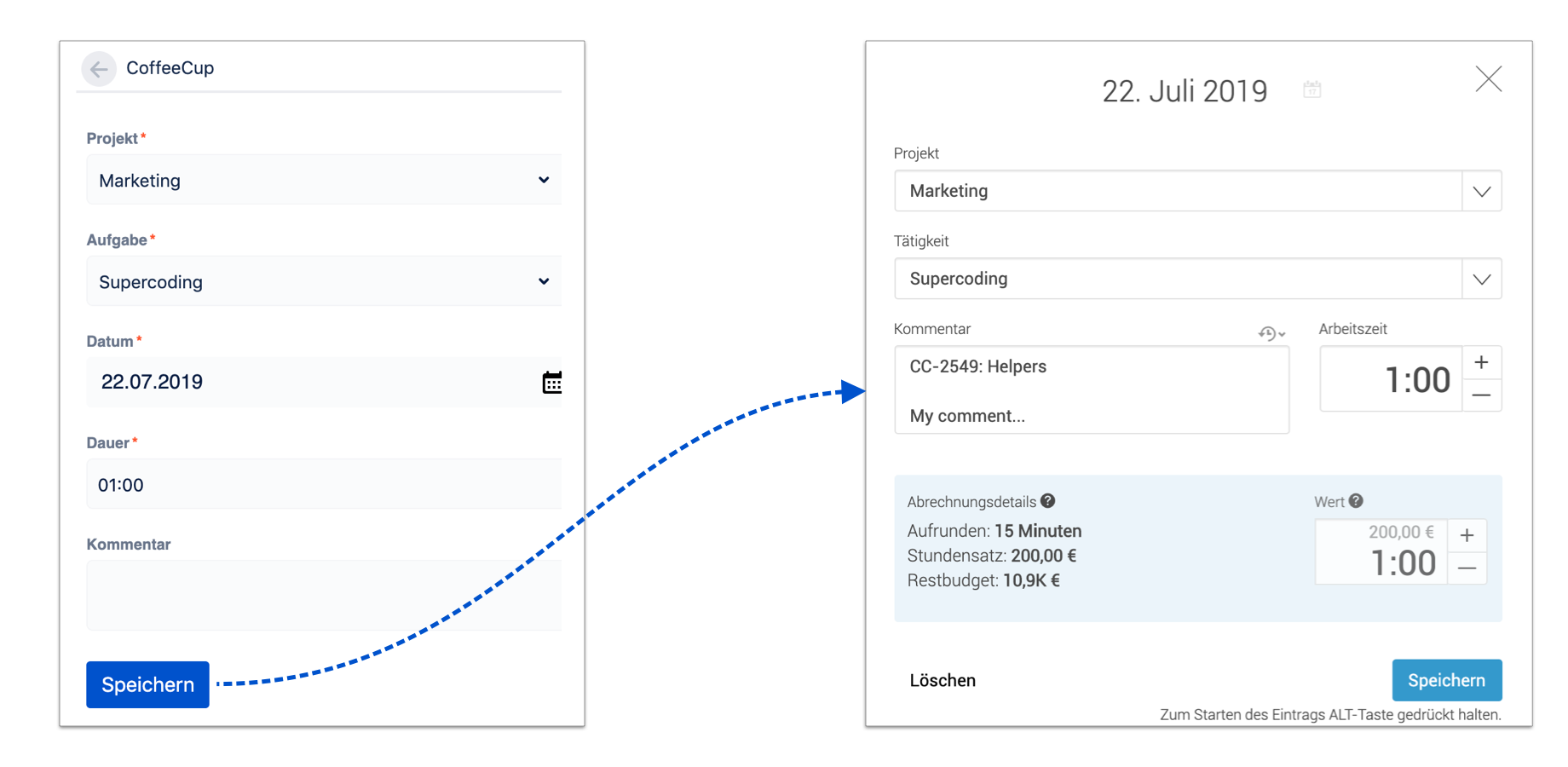 Your recorded working hours in Jira are automatically transferred to Aerion. The issue key will be inserted in the comment section of every time entry by default.