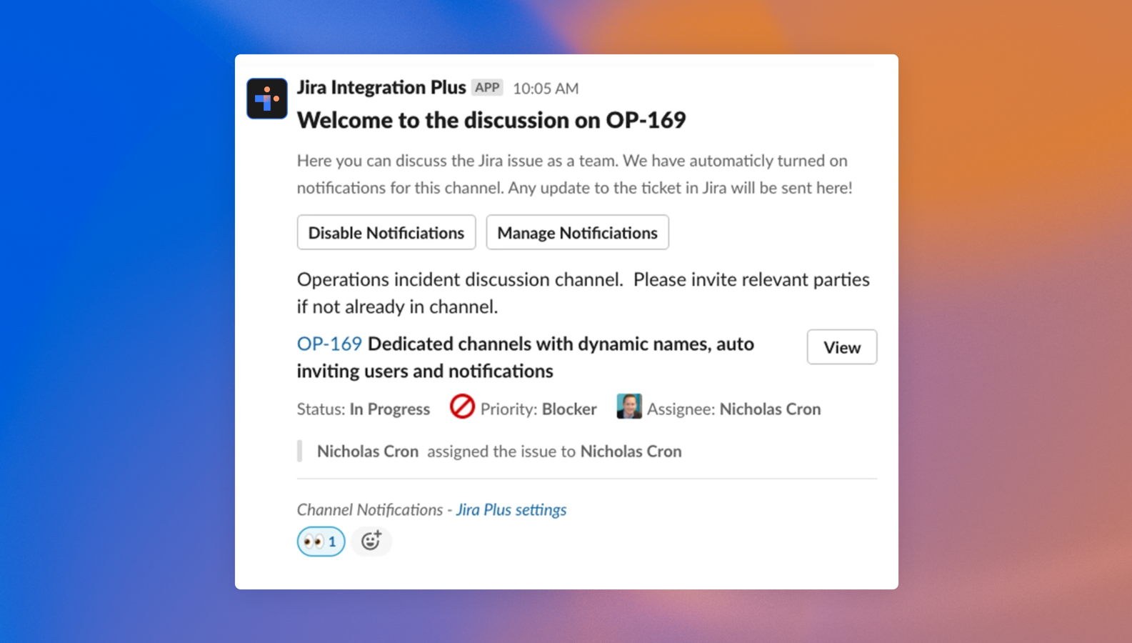- Create Slack channels to discuss Jira issues,