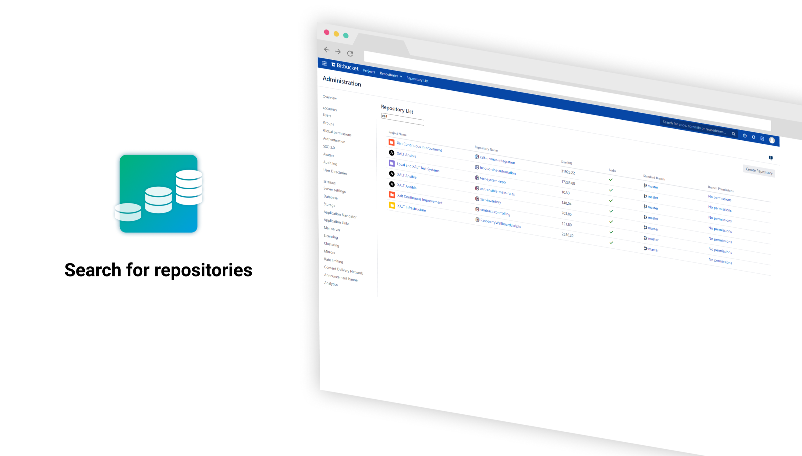 Key highlights of the appList and filter repositories by name and disk space directly in Bitbucket