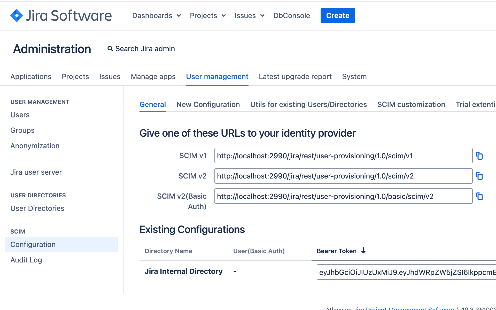 - By default you can select any Jira internal 'User Directory' or create a new one for user provisioning;