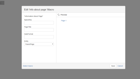 The plugin adds 'Info about page' macro where you can select what information about page to display in the page view mode: