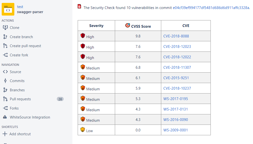Key highlights of the appIntegrates WhiteSource into Bitbucket Server or Data Center
