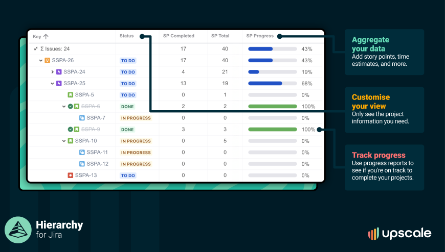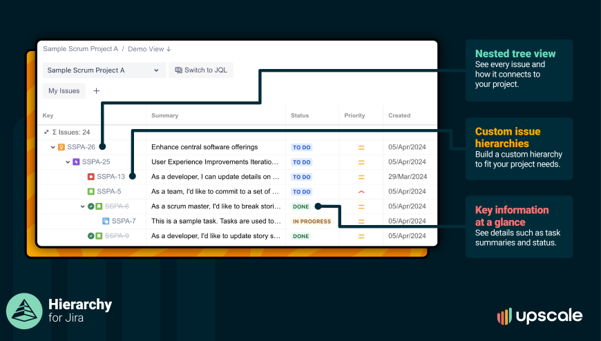 - Zero setup - Hierarchy for Jira reads your Jira issue structure.