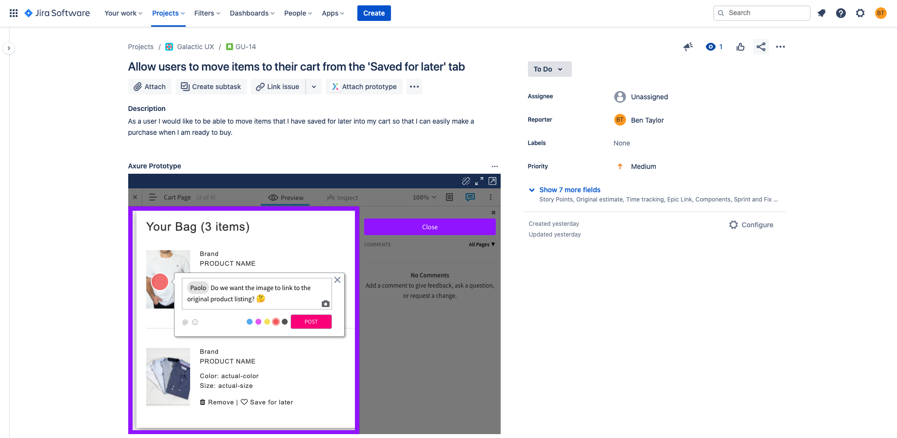 - That's it! You can navigate your prototype directly within the Jira ticket and start collaborating by adding comments