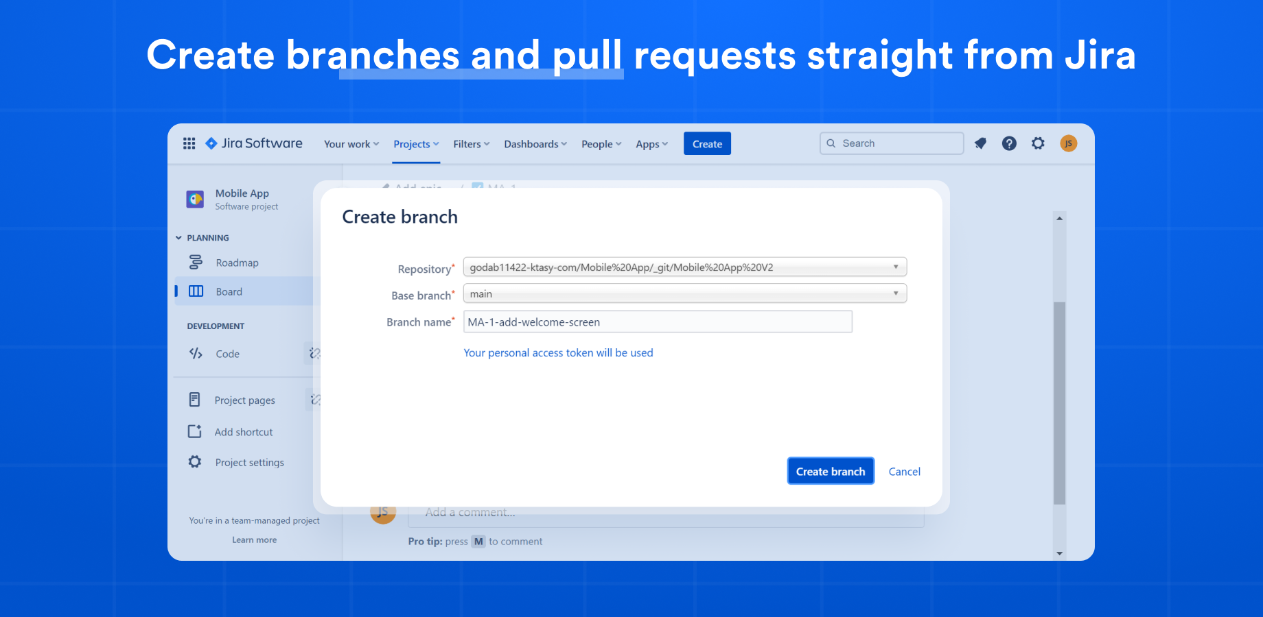 - Include Jira issue keys into your Git commit messages, branch names, or pull request titles