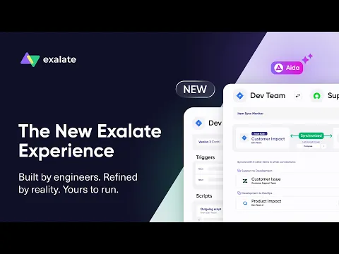 All the flexibility you expect from Exalate β now with unified management, Test Run, script versioning, and Aida for AI-assisted scripting and troubleshooting. Connect Jira, ServiceNow, Salesforce, Azure DevOps, Zendesk, and more β all managed from one place. Learn more here.In this release, weβve implemented improvements: