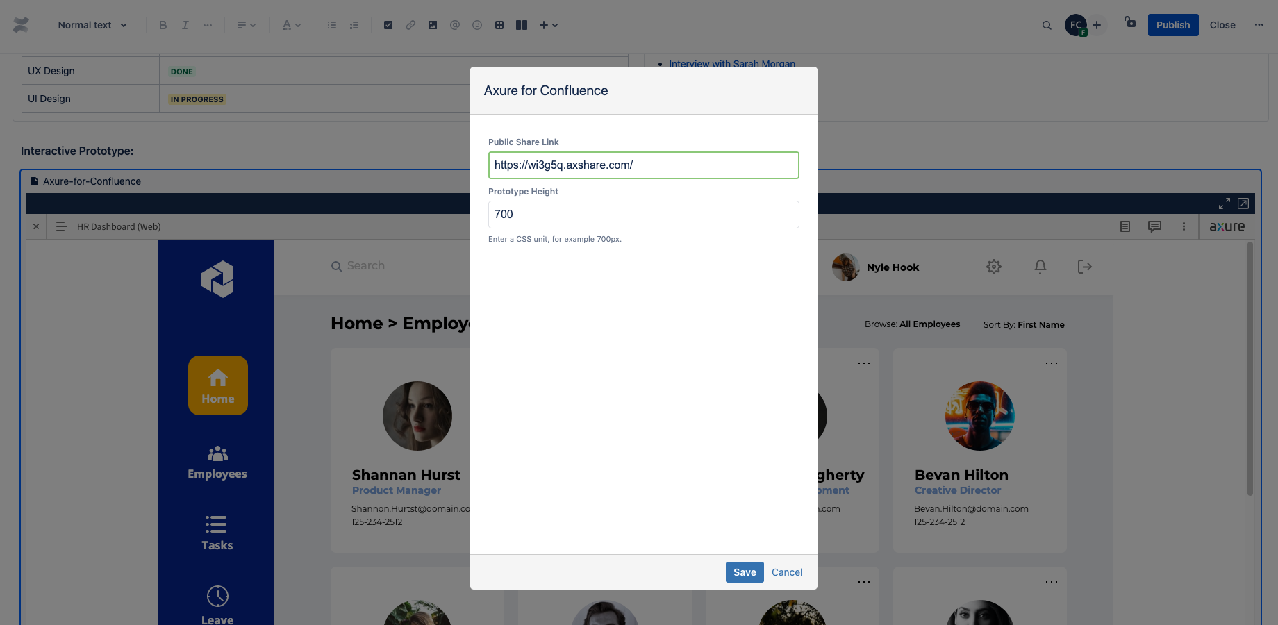 Easily embed Axure prototypes in Confluence pages