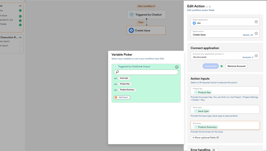 Automate your IT and or HR process using our no-code workflow builder. Integrate with different applications and provide instant resolution to user queries by calling automations from your chatbot with few clicks.