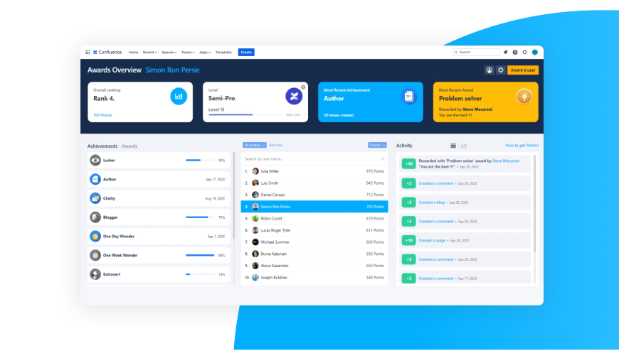 Key highlights of the appReceive awards and earn points with Trophies. Make Confluence more fun and engaging