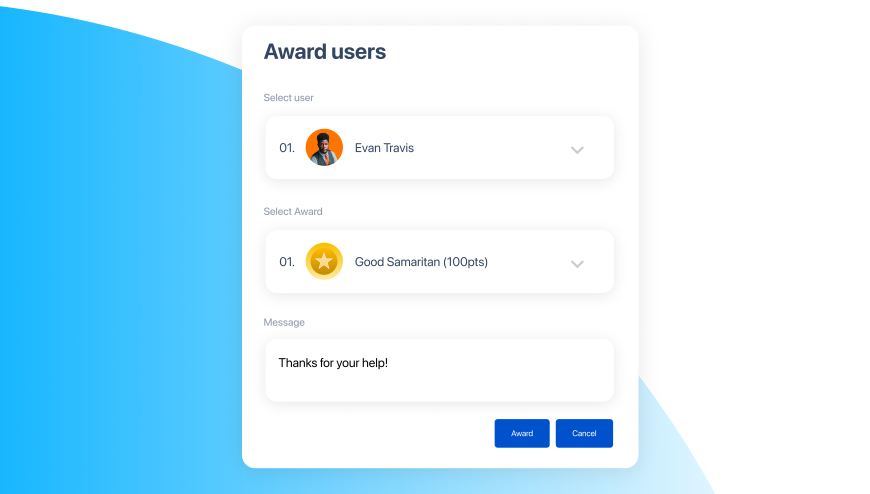Award other employees and leave a nice note. Give your colleagues a push to create pages, analysis, and guidelines to share their expertise. Make content creation a game to keep employee motivation and satisfaction high.