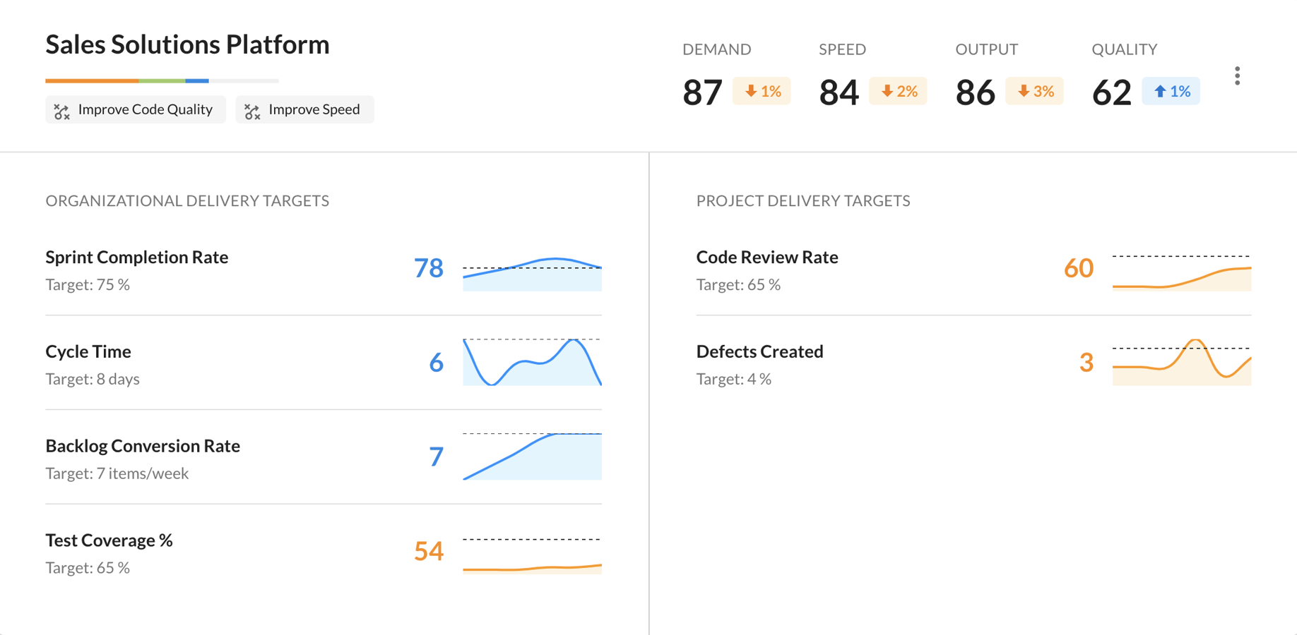 Our Treno Scores™ calculate project or process health, and provide an easy way to see which aspect of delivery is holding you back.