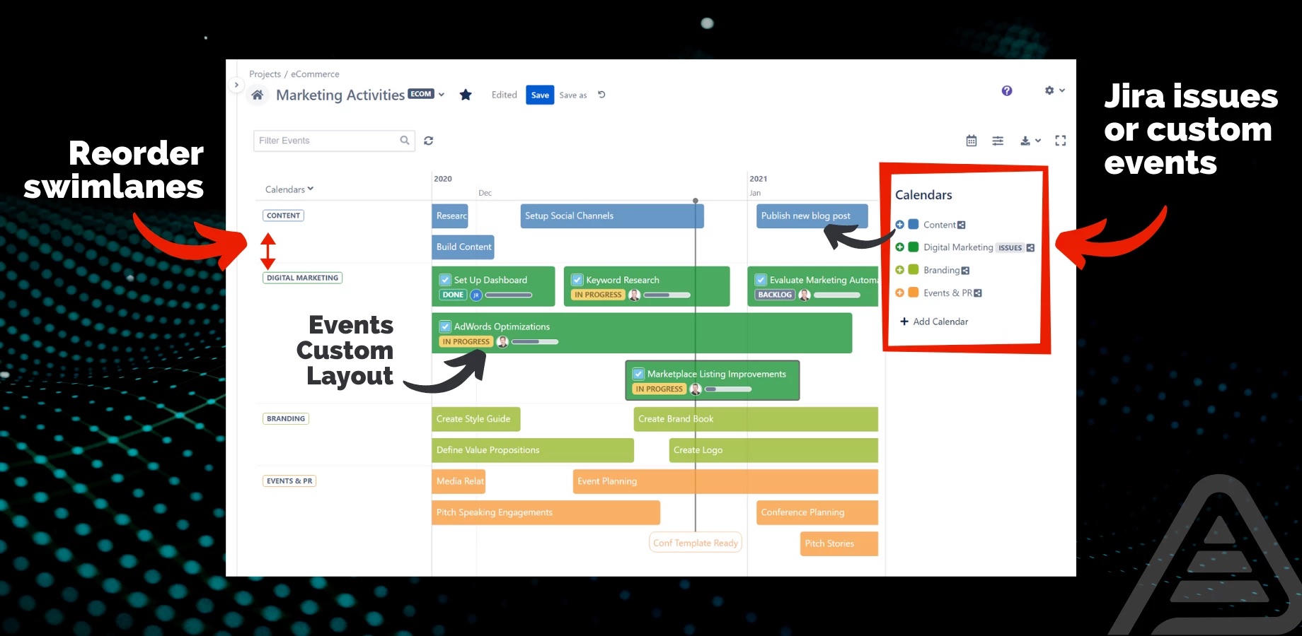 ✔️ Work with custom events, issues and versions from any Jira project(s) on a single timeline
