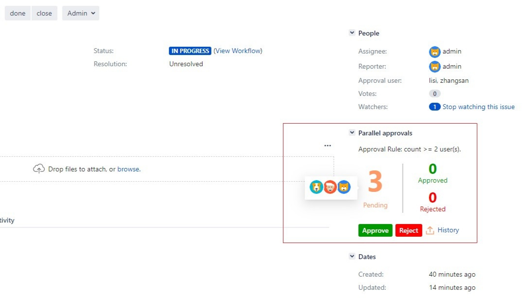 - After the approval result is generated, the issue will automatically transition to the specified state.