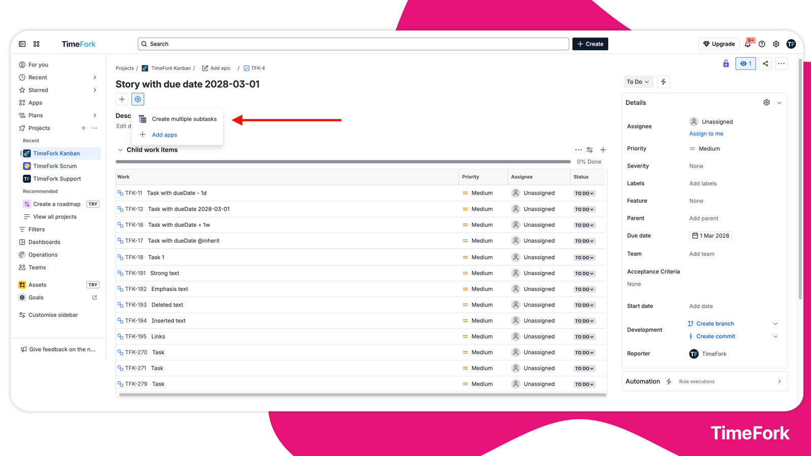 Create multiple subtasks for Jira integrates with your Atlassian app