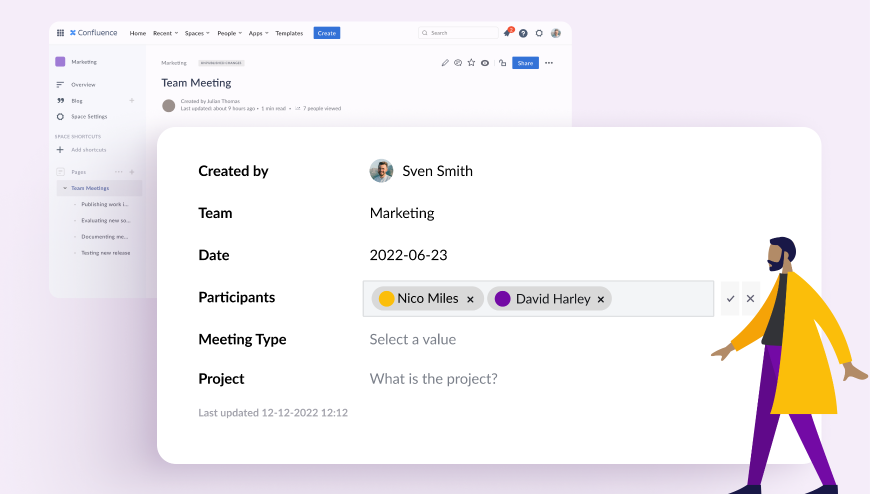 Easily capture metadata on pages and turn your Confluence space into a workspace to organize your work, structure information, and manage pages: