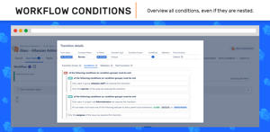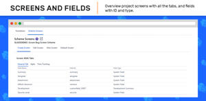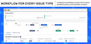 Select from available Issue Types, check assigned Workflow and Screens, analyze Transitions, and find hidden Conditions, Validators and Post-Functions.