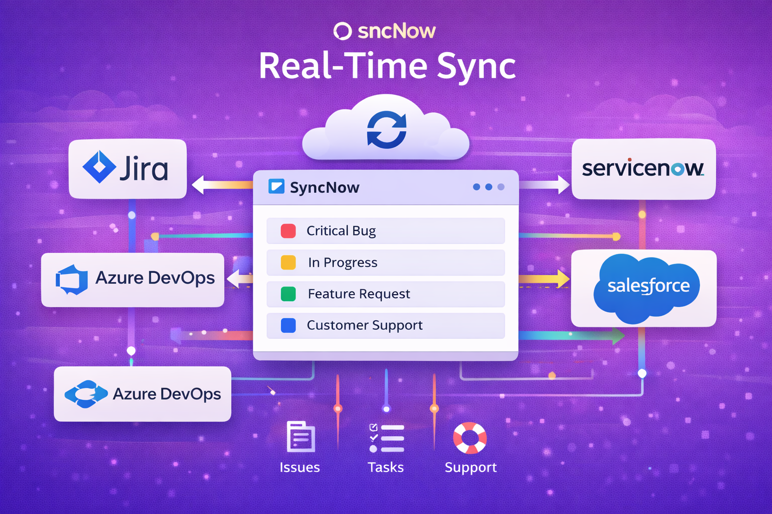 SyncNow is an enterprise-grade integration and synchronization platform that keeps work systems aligned in real time and empowers teams to collaborate without barriers. SyncNow bridges gaps between tools by synchronizing work items, attachments, comments, and custom fields across platforms.