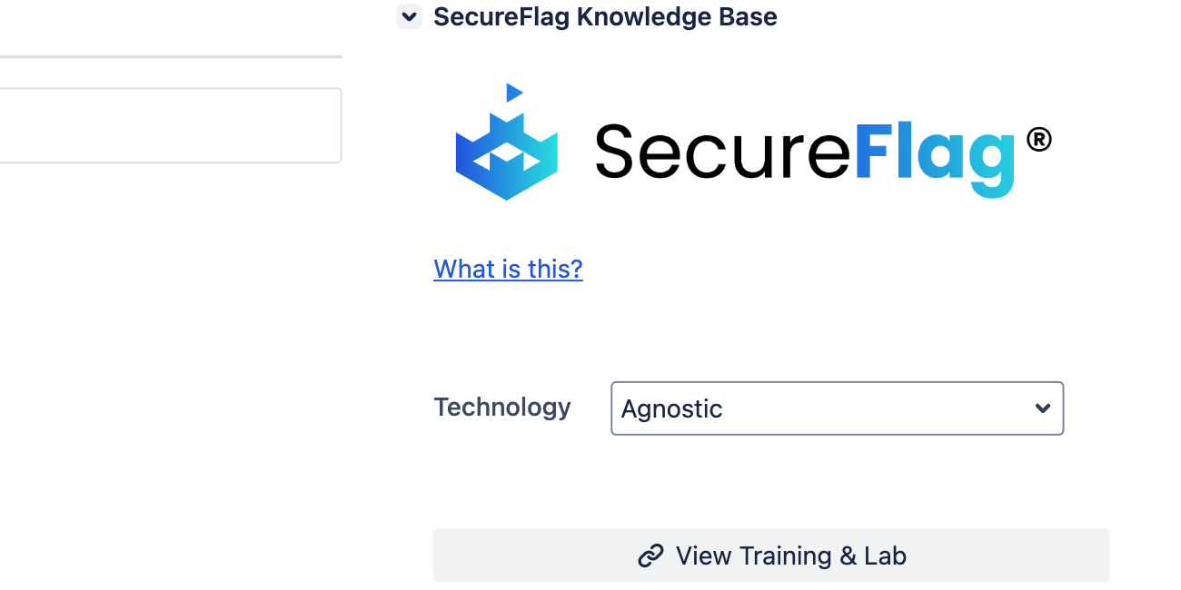 The SecureFlag Knowledge Base delivers contextual security training by suggesting relevant articles and hands-on training labs based on the title of a Jira issue. Users can further tailor results by selecting specific languages or technologies, ensuring precise and actionable learning. By surfacing relevant knowledge within the developer's workflow, the app enhances productivity and accelerates secure development practices.