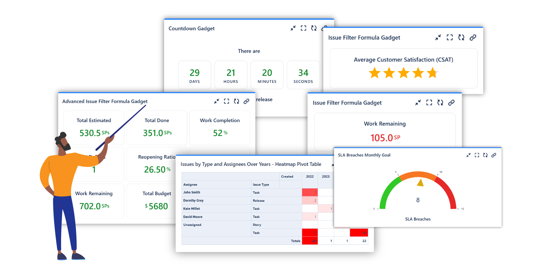 - Advanced Issue Filter Formula - displays the results of up to 6 math formulas applied against the numerical field of issues from multiple filters.