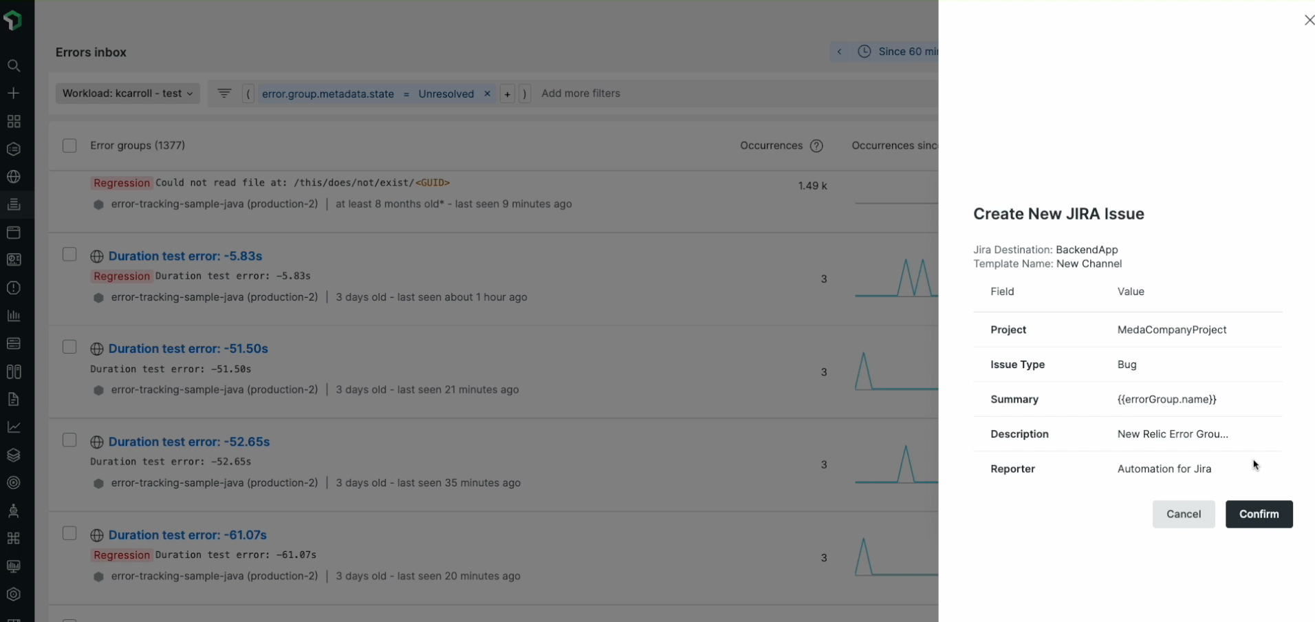 - Now anyone who has access to this errors inbox can start creating Jira tickets in two clicks while triaging errors.