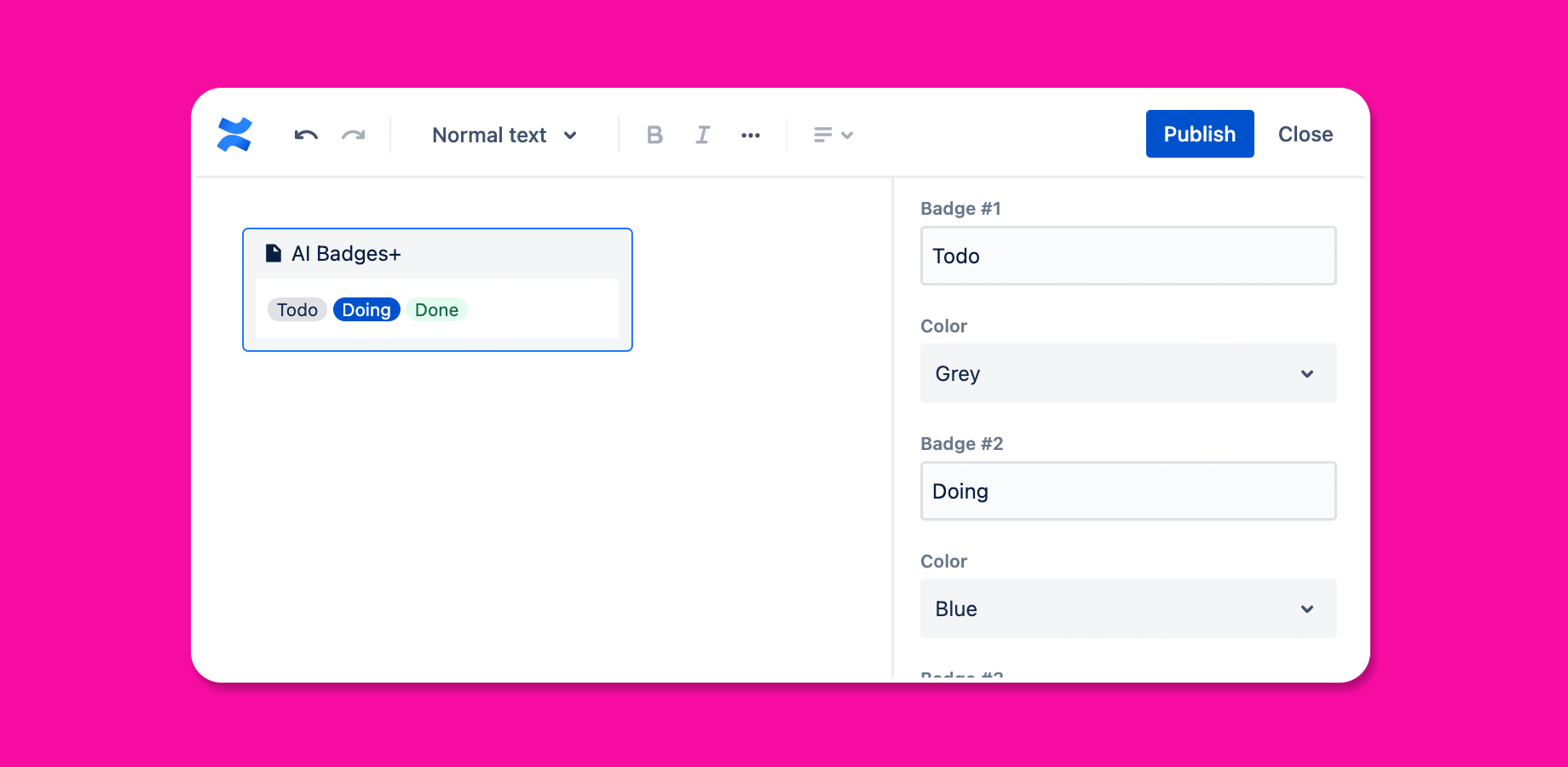 Simply type what badges or lozenges you want, and watch as the world's most advanced AI language model brings them to life inside your Confluence page.