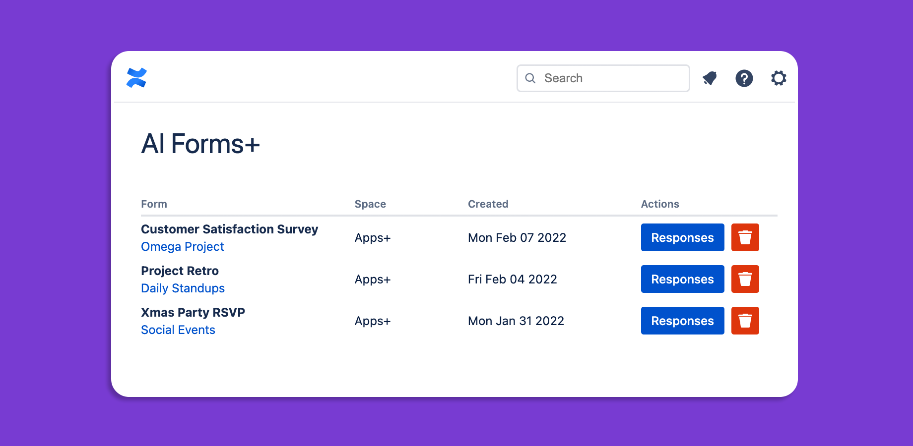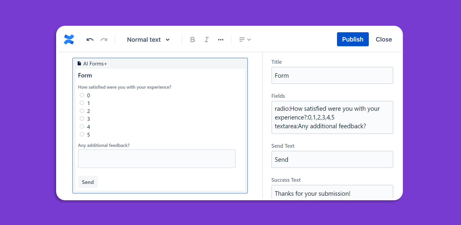 Simply type what form or survey you want, and watch as the world's most advanced AI language model brings it to life inside your Confluence page.