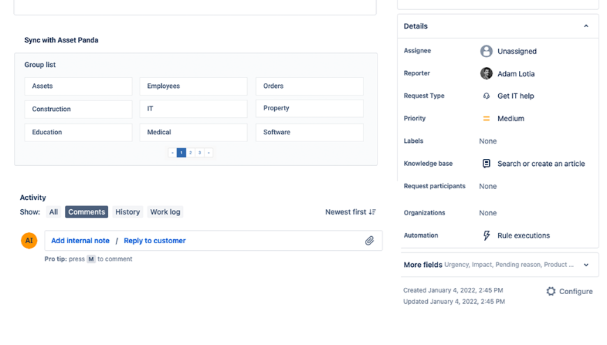 You can interact with both platforms without even leaving either platform (Jira or Asset Panda)